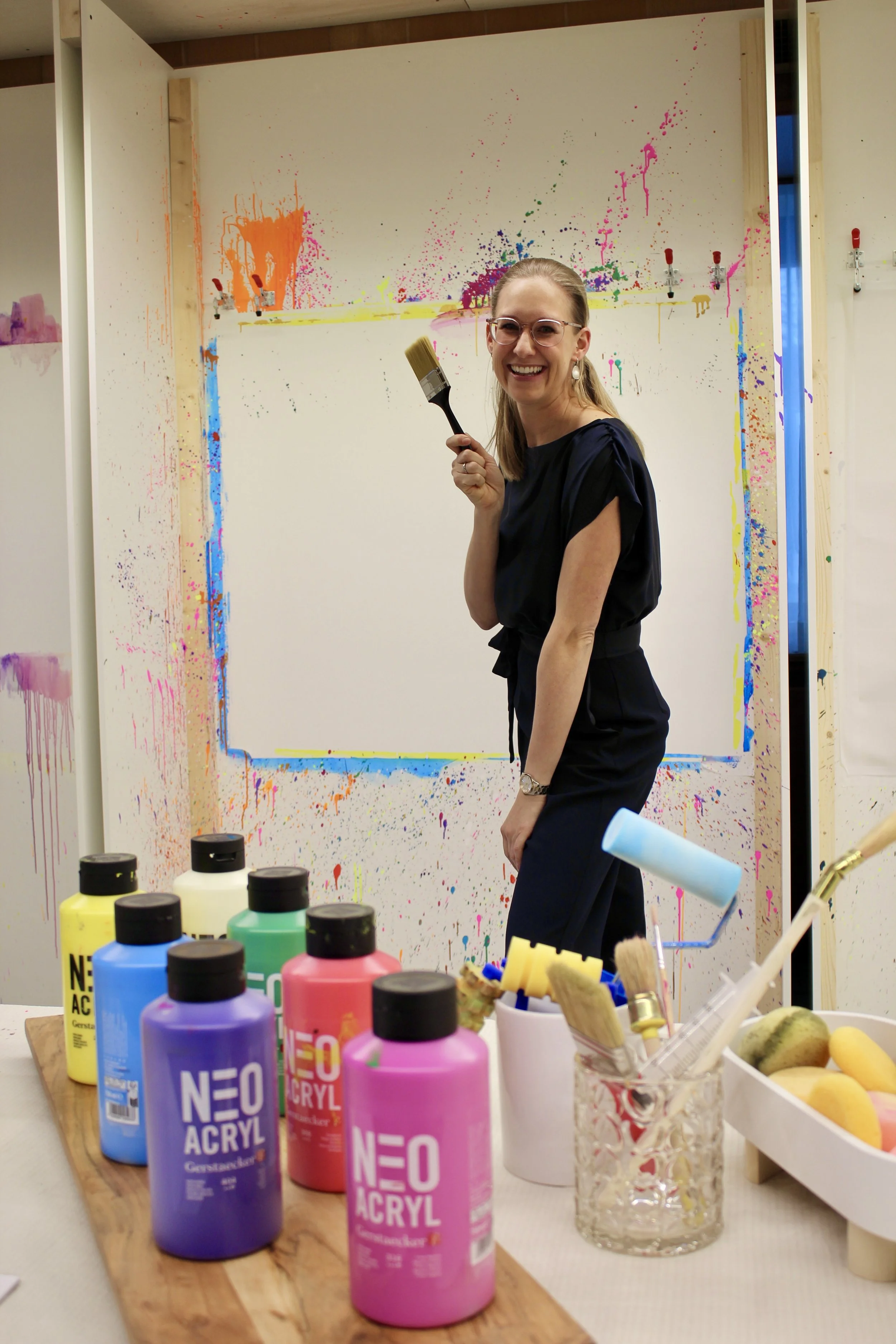 Anker ART ist das Herzensprojekt von Sandra Gunz, Mutter von zwei lebhaften Kindern und begeisterte Actionpainterin. Die Idee entstand nach einem unvergesslichen Erlebnis in einem anderen Actionpainting-Studio – und der Wunsch war geboren, diese besondere Form der Kunst ins Rheintal zu bringen.